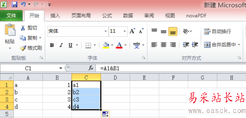 在C1單位格中輸入:=A1&B1,并回車,即可把單元格A1和單位格B2中的內容合并后填充到C1單位格中