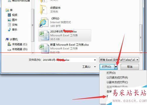 2、點擊“打開”右邊的“▼”,點擊“打開并修復(E)”。如下圖