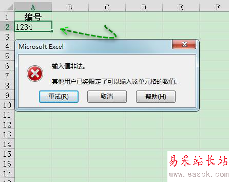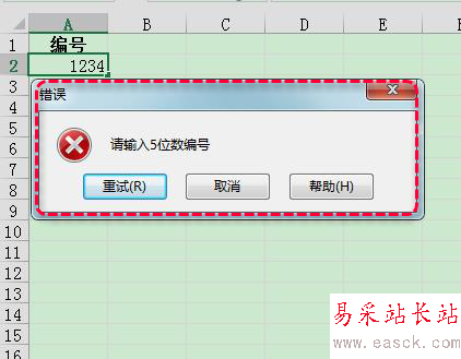 再次嘗試輸入“1234”,look,錯誤警告便會以你設置的內容出現了。