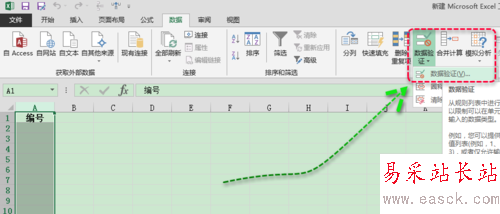 示例操作目的:以A列為號碼(編碼)列,要求是在A列只能鍵入5位數。