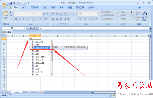 輸入【RANDBETWEEN】函數時有個小技巧,在輸入=后按鍵盤上的R鍵,可以在里面選擇RANDBETWEEN函數。用單擊一下RANDBETWEEN函數,此時不要按鍵盤上的回車鍵。