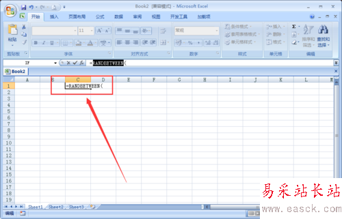 隨意在電子表格單擊按鍵盤上的輸入【=】在輸入【RANDBETWEEN】。