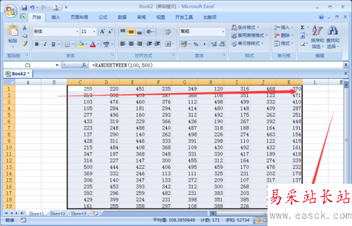 首先打開Excel2007l工作面版,在這里面輸入大量的隨機數字。