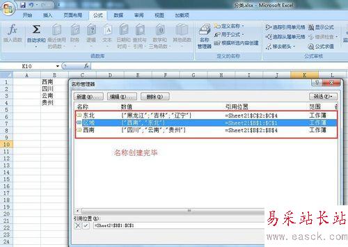 2)名稱填寫為“區域”,引用位置選擇區域所在位置。