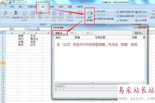 1)打開“公式”中的“名稱管理器”后,點擊“新建”按鈕。