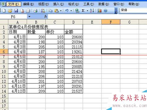 2、新建一個表格(或者打開一個已存的表格)。在此以一個簡單的表格為例。