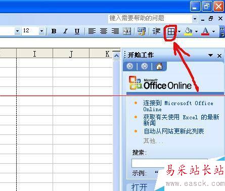 5、找到工具欄中的一個小窗戶圖形的圖標,點擊右側的黑三角,在下拉菜單中選擇四周都是實線的“田”字。