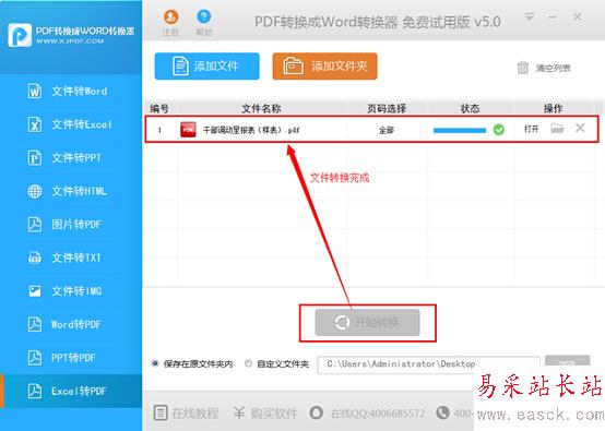 4、點擊軟件上的“開始轉換”按鈕,軟件開始對excel文件進行轉換,等待片刻即可轉換完成。