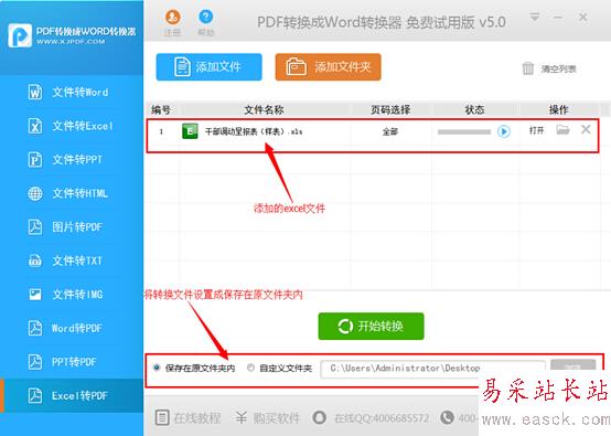 3、選擇轉換后文件需要保存的位置,這里將文件保存在原文件夾內。這個步驟用戶可以不需要進行,一般情況下文件默認保存在桌面上。