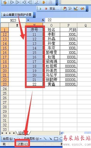 1、選中序號所在區域包含標題 此時顯示的計數為23
