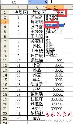 5、點擊黑三角 點選最大的尺碼 執行一次具體的篩選 然后最大尺碼的被保留 其余的被篩掉了