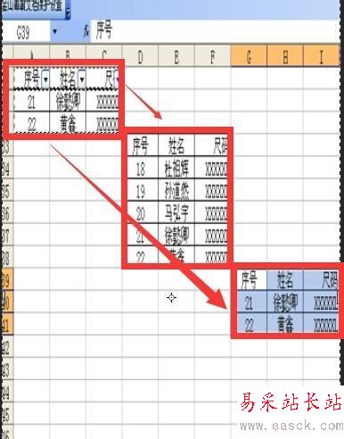 8、將通過篩選 只顯示XXXXXL的表格復制 然后粘貼是可見即所得的粘貼方式 如下圖中間框所示 將只顯示XXXXXL的表格再隱藏幾行 然后粘貼也是可見即所得的如下圖右下角紅框