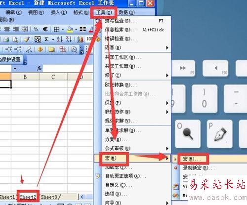 點選sheet2 然后執行宏 點擊菜單欄 工具 宏