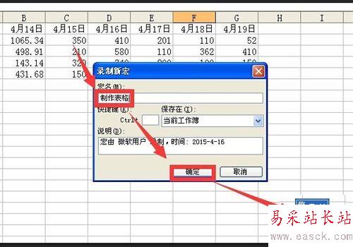 輸入制作表格作為宏名 單擊確定按鈕開始錄制宏 此時excel應用程序窗口中顯示 停止錄制工具欄 如果不給excel指定宏名 excel會以macrol作為默認的宏名 宏可以保存在個人宏工作簿或當前工作薄 如果保存在當前工作薄 只有該工作表薄打開時 宏才可用