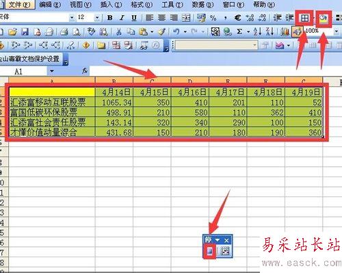 此時點按按鈕 表格左上角區域將自動添加黃色和邊框
