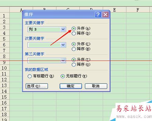 點擊排序,出現(xiàn)以下窗口,選擇升序還是降序,一般就會自動排列順序,包括性別、年齡、大小等一般常規(guī)性的排列,這些功能都可以實現(xiàn),最后點擊確定。