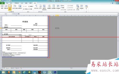 1、運行excel,打開要打印的文件。下圖虛線右側的則是超打印區域的部分。