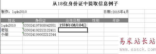 我們啟動Excel2003,錄入需要提取信息的身份證號碼。