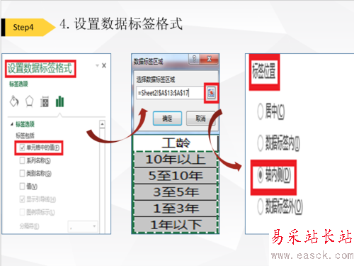 設(shè)置數(shù)據(jù)標(biāo)簽格式——單元格中的值——選擇數(shù)據(jù)標(biāo)簽區(qū)域——標(biāo)簽位置(軸內(nèi)側(cè))