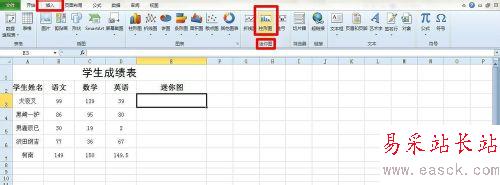 2、單擊需要放置迷你圖的單元格,此處為單元格E3。選擇“插入”選項卡,在“迷你圖”組中單擊“柱形圖”按鈕,如圖。