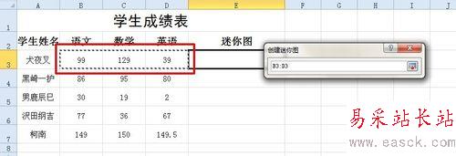 3、在彈出的“創建迷你圖”對話框中,選擇數據范圍,此處為從單元格B3拖拽至單元格D3,單擊“確定”按鈕,如圖。