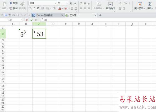 在EXCELB1單元格錄入“53