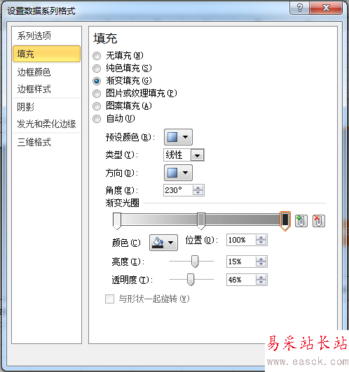 美化步驟1:設置面積圖填充為漸變填充,如下圖1所示進行設置。