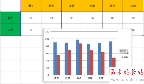 第六步,將圖例名“計劃2”改成“計劃”;"計劃"改成“差額”;“實際2”改成“實際”。并且將原來的“實際”圖例(只是圖例而已)刪除。