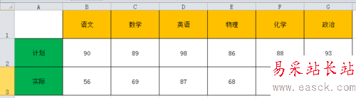 3.將五個科目和三個分數項(實際分數、預期分數和分數差)在表格中寫成交叉的形式。