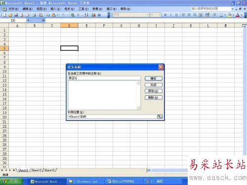 3、在“在當前工作薄中的名稱”內(nèi)輸入“修正1”點擊確定