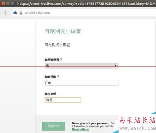 本步驟用另一個(gè)瀏覽器,在不登錄的情況下打開第 5 步驟中生成的調(diào)查共享鏈接,并答卷、提交,非常順利。