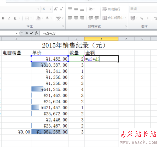 如我們要計算下表的金額欄公式為:=C3*D3回車即可,自動公式運行規則就是四則運行規則。