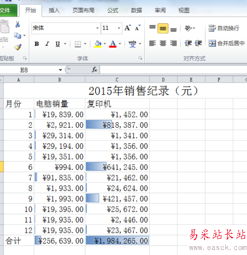 自動求和,在同一列數字中,我們要得到總合計,直接點自動求和按鈕即可。