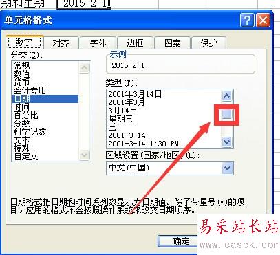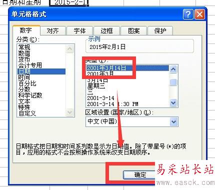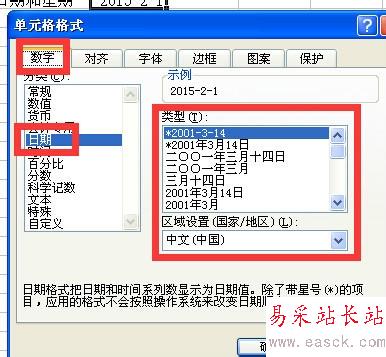 5、點擊數字選項卡下的日期 在右側選擇一種想要的格式