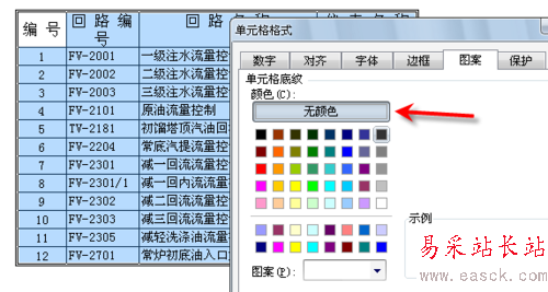 4、在“單元格格式”對話框中找到“圖案”選項卡,將底紋顏色改成白色。
