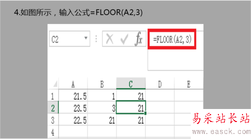 4.如圖所示,輸入公式=FLOOR(A2,3)