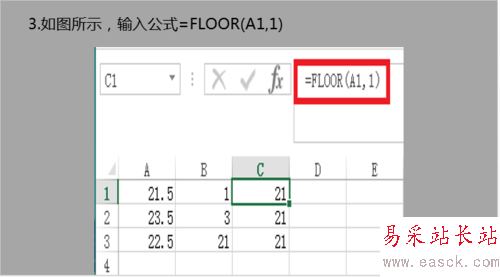 如圖所示,輸入公式=FLOOR(A1,1)