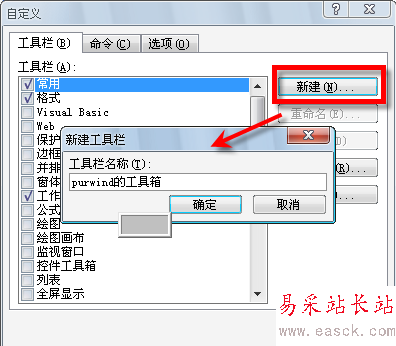 2、菜單欄打開“視圖”-“工具欄”-“自定義...”,在“自定義”對話框中的“工具欄”選項卡中,單擊“新建...”按鈕,并取名。