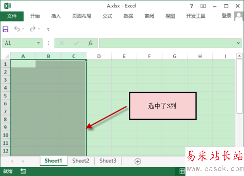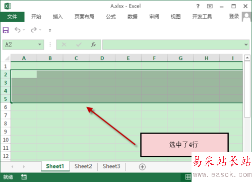 4、工作表內從左到右的方向被稱為行,從上到下的方向被稱為列,如下圖所示,分別選中了4行、3列。