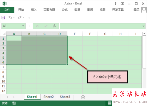 3、在每個工作表內,被網格線縱橫隔開的就是單元格,如下圖所示,總共選擇了24個單元格。