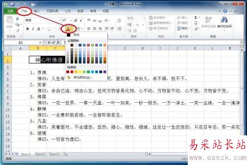3、在字體顏色的下拉框中,我們可以看到里面有許多種顏色可供選擇,點(diǎn)擊你最喜歡的顏色。就可以看到如下圖的效果(是不是好看多了):