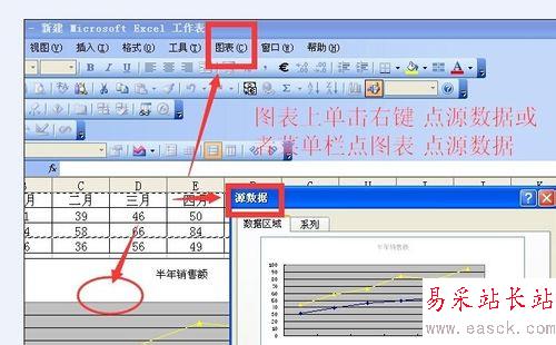 7、在圖表上單擊右鍵或者點(diǎn)擊菜單欄 圖表 數(shù)據(jù)源 彈出數(shù)據(jù)源對(duì)話框