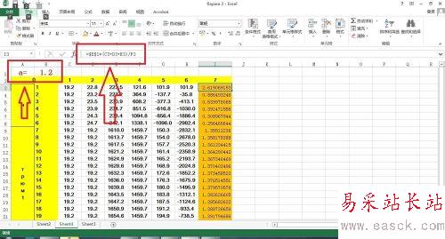 2、我們在活動單元格的最上端打出a=1.2,然后在公式中引用B1單元格,輸入公式“=B1*(C2+D2+E2)/F2”我們的問題來了,在拖拽的過程中,引用了的單元個是依次向下的那部分,B2、B3、B4...這里我們就需要絕對引用了