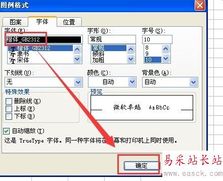 4、字體 點選楷體 然后點擊確定