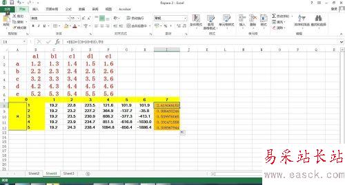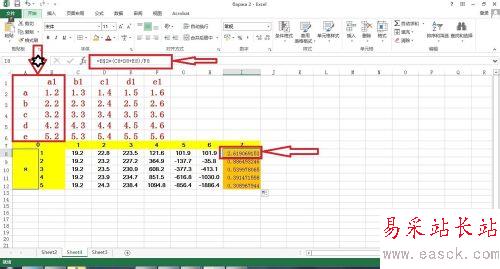 2、先來學習我們要引用 行 中數值,我們引用 a 行中a1,b1,c1,d1,e1 的數值,將公式改為“=$B2*(C8+D8+E8)/F8”,進行拖拽就可以了,很簡單吧