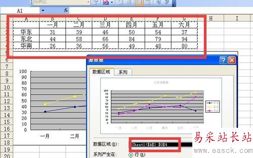 7、在圖表上單擊右鍵或者點(diǎn)擊菜單欄 圖表 數(shù)據(jù)源 彈出數(shù)據(jù)源對話框