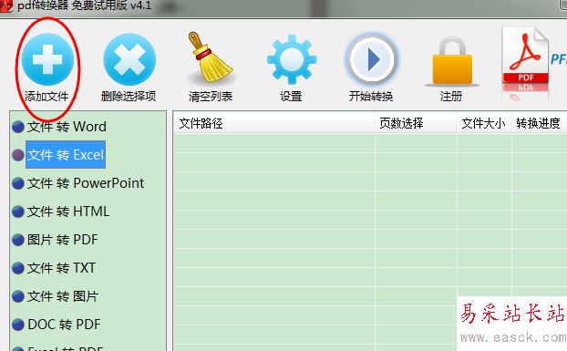 步驟二添加文件,點擊pdf轉換成excel轉換器的“添加文件”按鈕,將pdf文件添加到程序界面,軟件支持添加多個pdf文件。