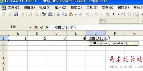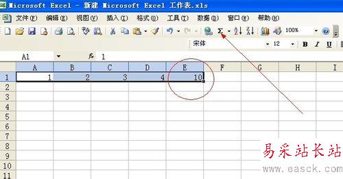 1、選中要求和的單元格【a1 E1】,鼠標拖拉,如圖所示