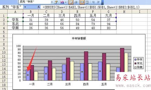 2、點擊華東數據系列中的某個數據點 選中華東數據系列