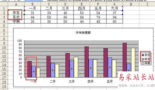 7、點擊確定之后觀察數據系列中東北的位置和華北的位置已經調換了